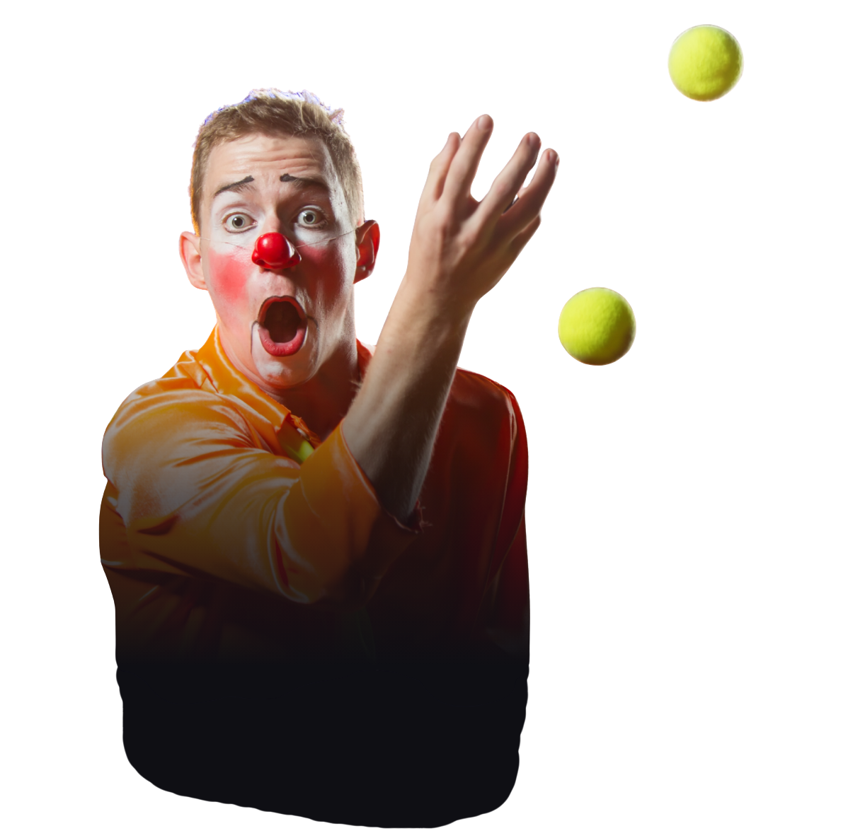 Animació itinerant, Clown, Màgia, Circ, Aniversaris i celebracions i tot tipus d'esdeveniments infantils i familiars.